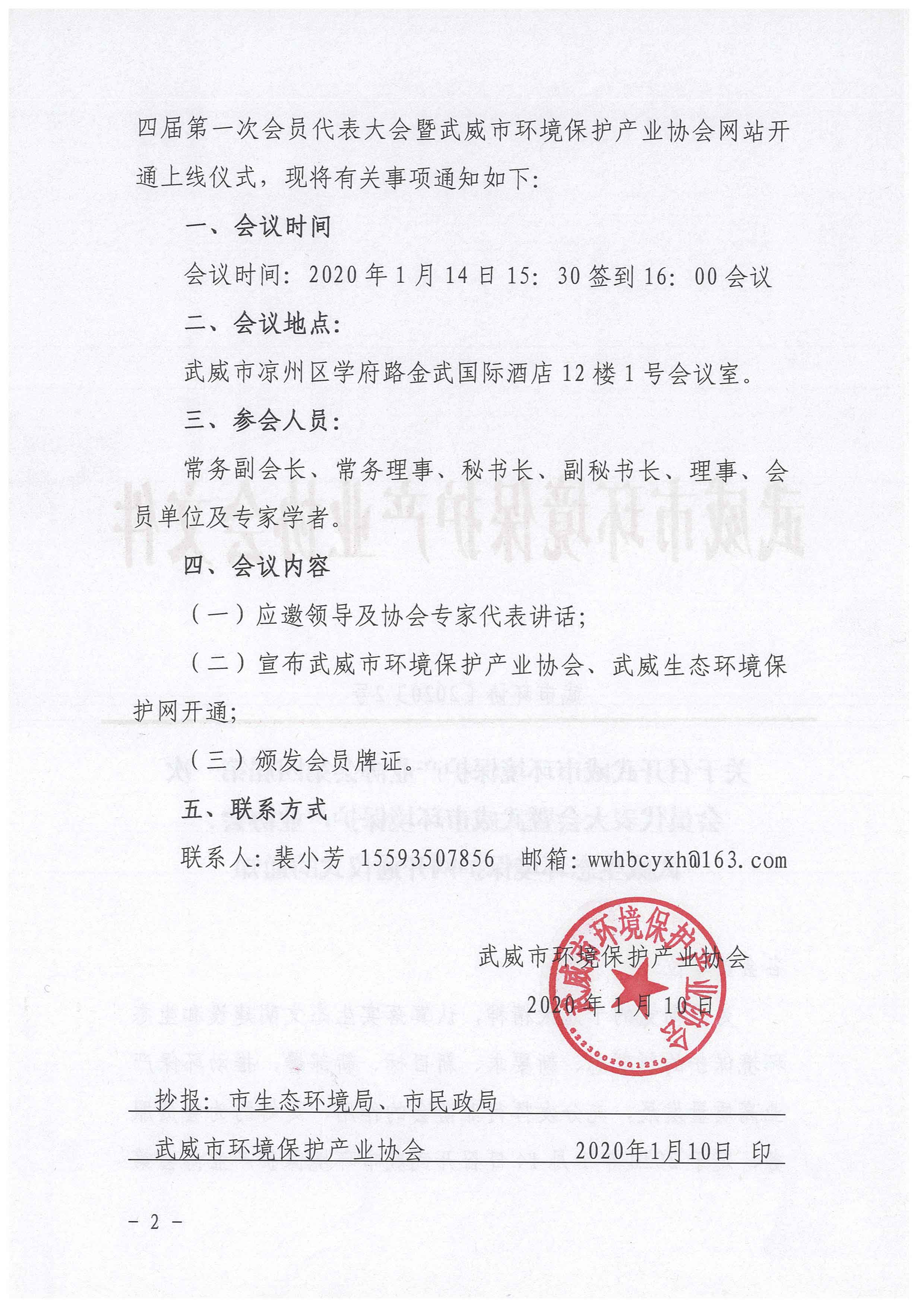 關于召開武威市環(huán)境保護產(chǎn)業(yè)協(xié)會第四屆第一次會議的通知